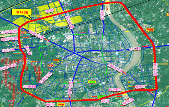 绕城高速公路改扩建项目扩建方案全长31.196km,路线起于中洲藏龙岛,与绕城高速公路共线布设,将绕城高速进行两侧拼宽至八车道,...